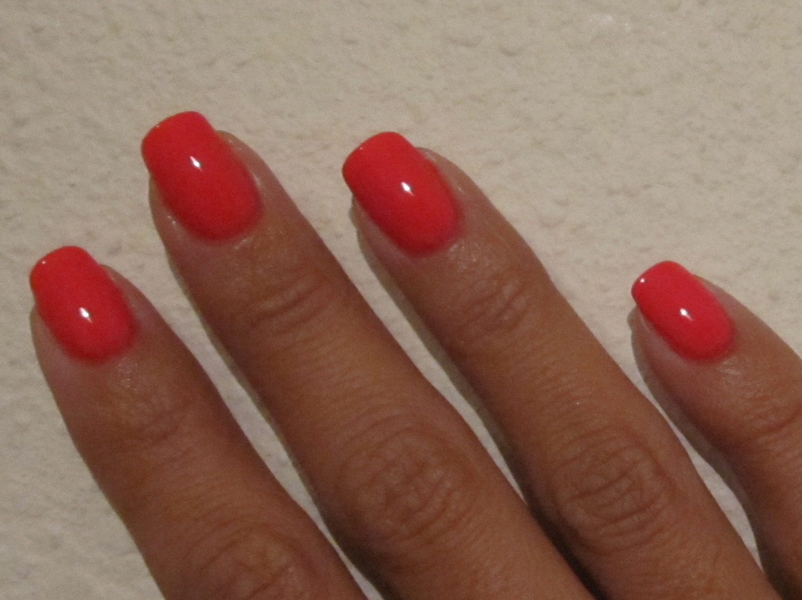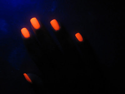 Since I had to dress up for work, a group of us decided to be an 80's all girl band. I wanted neon nails. I did bright neon orange. Of course the picture doesn't do them justice as they don't look neon at all here. But believe me in person they are totally vivid neon orange.