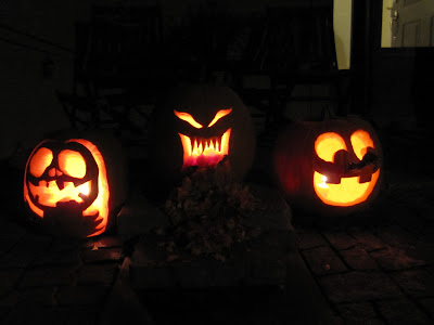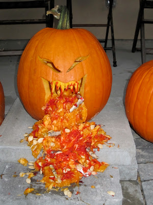 Here is the pumpkin once it was done. This is my take on the puking pumpkin. Notice the blood and bones in his puke?