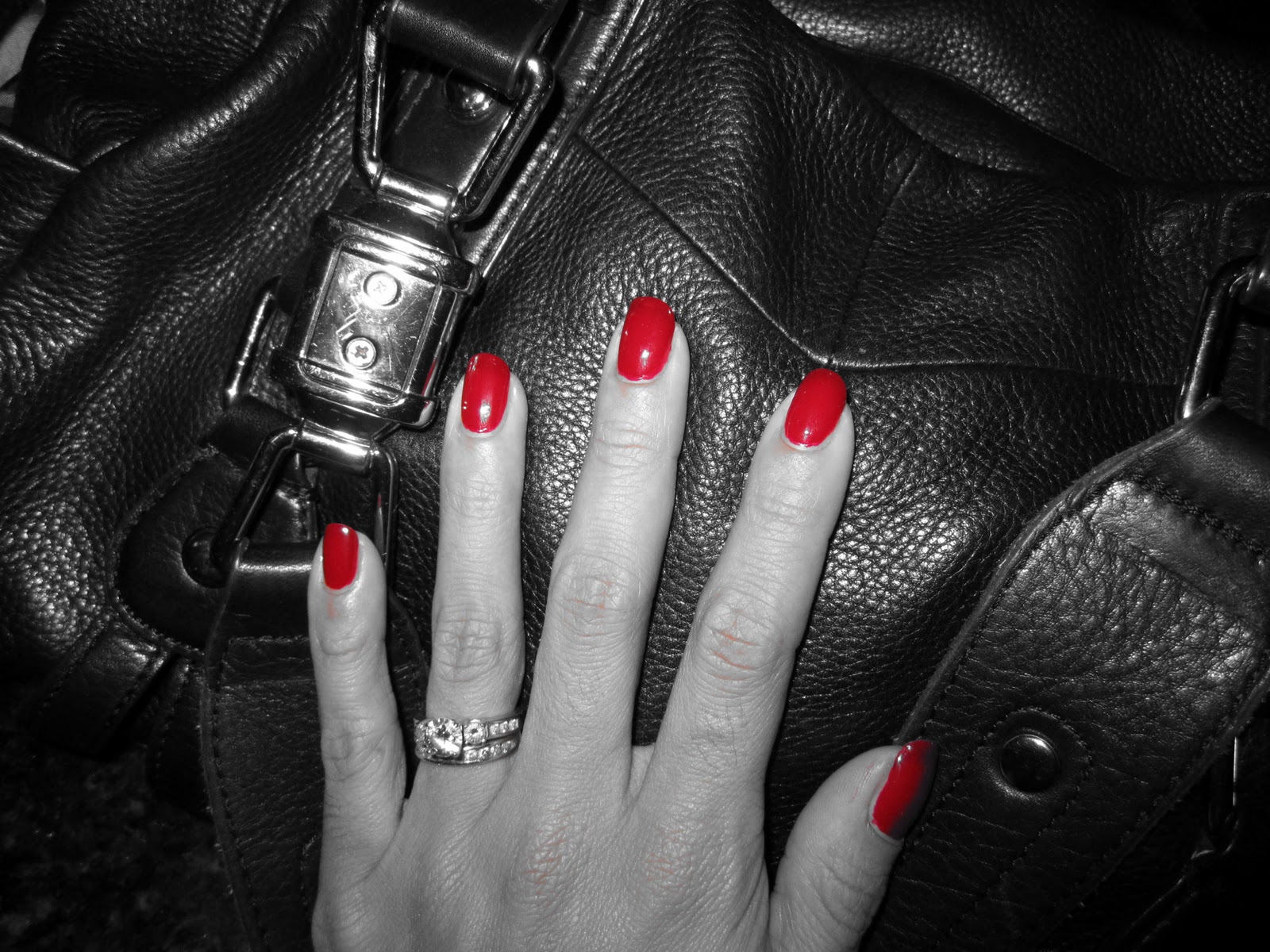 How cool does this look? I feel like I am in a black and white movie, where you can envision just how red her nails are .