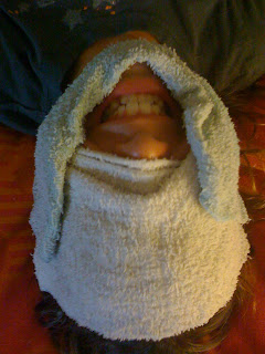 B tries to play with the color highlight feature, but apparently I was so hot from all the work I was doing, my skin wouldn't go black and white. I look so tired here! Oh well!