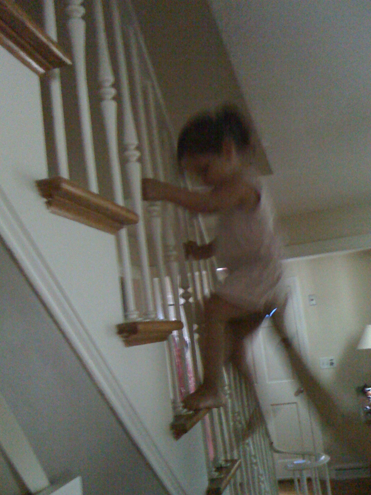 My cousin's daughter loves to climb the side of the stairs.   Daring already at such a young age!