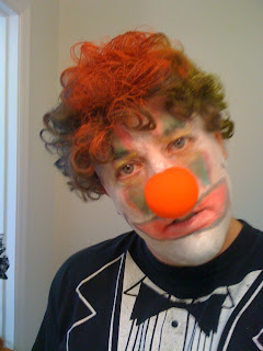 When B was in the hospital getting the needle out of her foot - she missed Halloween. Juan came dressed like a scary clown for her