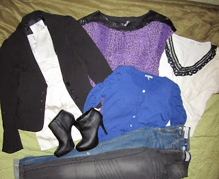 Mix & Match tops and two pairs of jeans. Lot's of Blue, apparently my warm clothes is in the gray and blue family. Who knew? But I can mix and match most of these tanks/tees with the sweaters and shirts, so it makes it fairly easy.