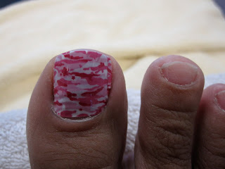 Here is a picture in the middle of my manicure after the Minx has been applied. I opted for the pink camouflage. Look how tiny my nail beds are on my feet!