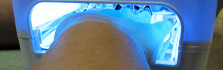 Here was a cool picture of my friend curing her Shellac manicure. I couldn't resist taking the picture. She must have thought I was a nut taking this! Ha!