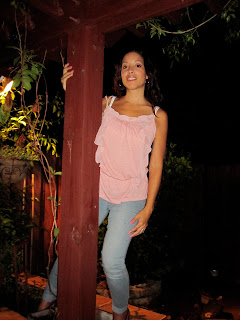 The outfit I am wearing is the one I mentioned I had to stop at Target to buy a few Friday's ago due to the coffee spill incident. I am wearing jeans here where that day I had on black cargo pants, but it the top I got and of course I accessorized. It was dark out when we took the pictures, so we shined the car lights on me and between the car lights and flash, I ended up with red eye in some of these pictures.