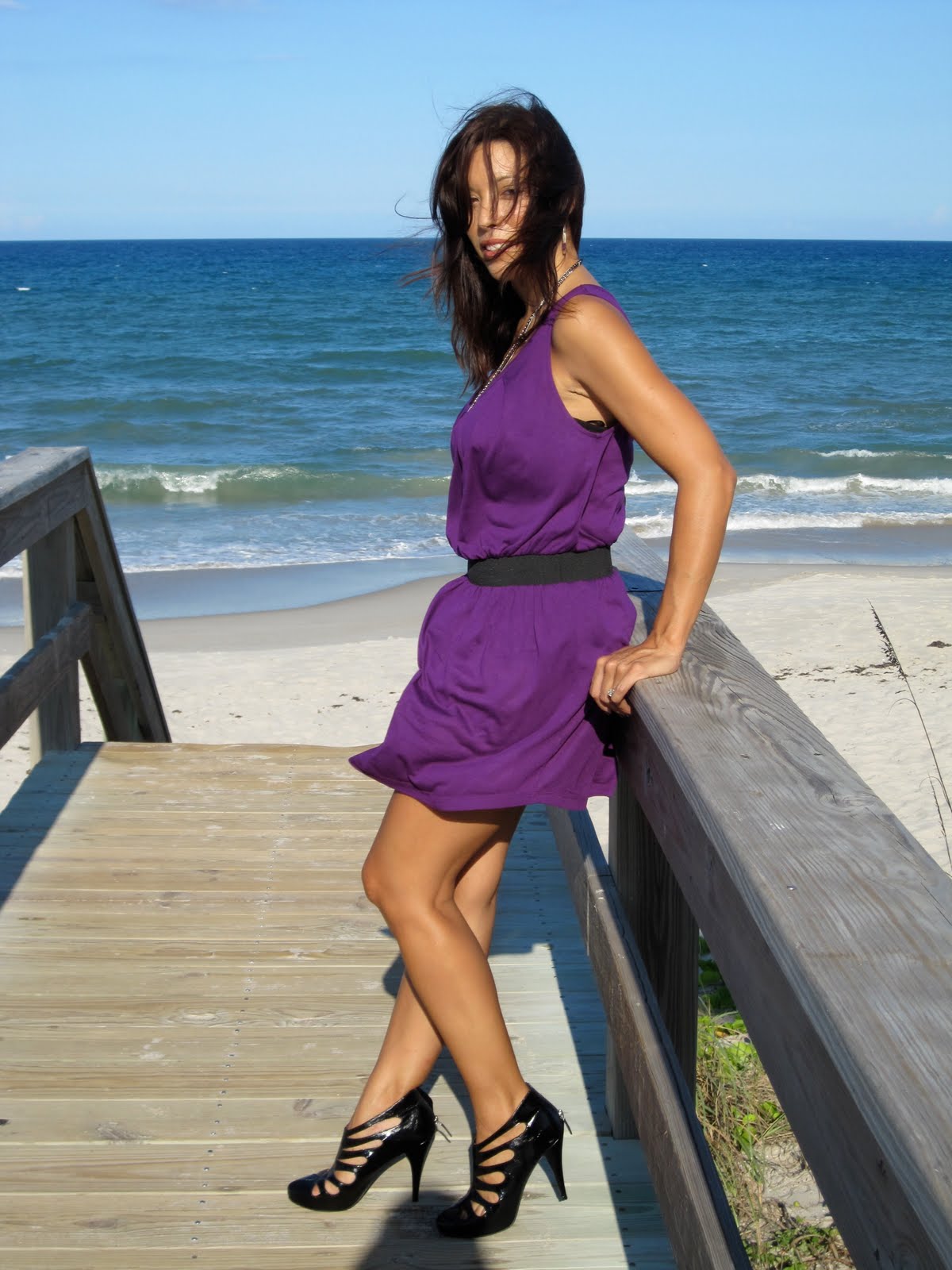 For the evening, I took the pants off, brought down where the "belt" of the dress is, so it would sit lower on my waist and removed the jacket. Hey it's still in the 90's here in FL. I was dying taking the pictures with the jacket and pants at the beach! Either way I am so loving the versatility of this dress! It is so comfy and cute! I think I should have grabbed it in a smaller size though. It makes me look a bit bigger than I am with the wind blowing the way it does on the beach. HA!
