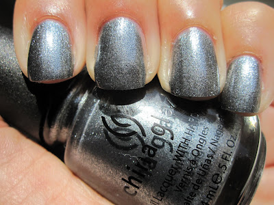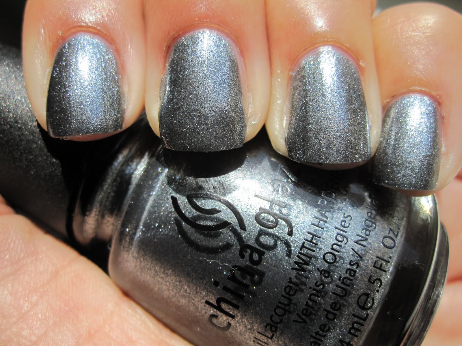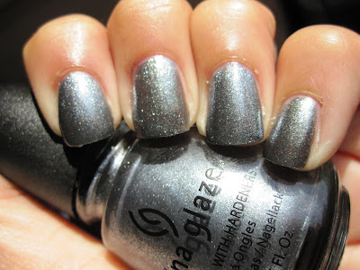This is China Glaze Jitterbug. I love this color. This applied in 2 coats. Such a shimmery gunmetal grey color. Not much I can say about it, other than I like it. I definitely see this as a Fall staple. Hope you all enjoyed my pictures today!