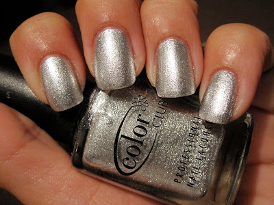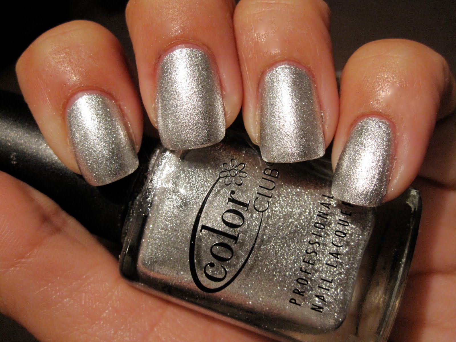 After three days of school open houses, I am exhausted. I so can't wait for the weekend. I feel like I just live for the weekends lately. I just got back from vacation and already I feel like I need another vacation. Anyway I wanted to do a design on my nails, but then I realized I was just to tired to do it. I did half the design on one hand and then just had to remove it all and decided just a coat of polish was all that was going to happen for me. Maybe tonight I will finish what I started. Let's see what happens. Anyway I showed this one on here a long time ago, so hopefully it is long enough that I can show you again. It is Color Club What a Drag. This is two coats. I love the silver foil finish of this polish, I just wish it was a bit shinier. It seems to drink in the top coat, so there is no added shine by adding topcoat to it. But it will work for now.