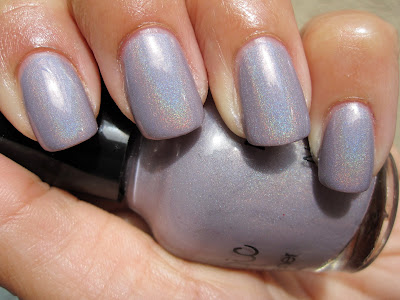 This week is going to be franken week. I will show you some of the frankens I have created. The polish I wore Saturday night was AMAZING! (I am still wearing it actually.) This is one of my favorite frankens. I wish I came up with this one a long time ago. It is a light grey/purple holo! Inside it looks almost purple metallic and outside - OH BOY!