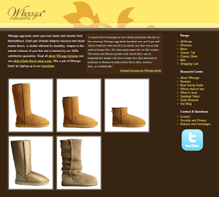 I was contacted by Whooga Ugg Boots asking if I would post a link to their website and their Ugg Boot give-away. After checking them out, not only am I willing to post, but I want a pair. First let me start by saying that I love Ugg boots. They may not be the cutest, but they are the best!!! LOVE uggs!