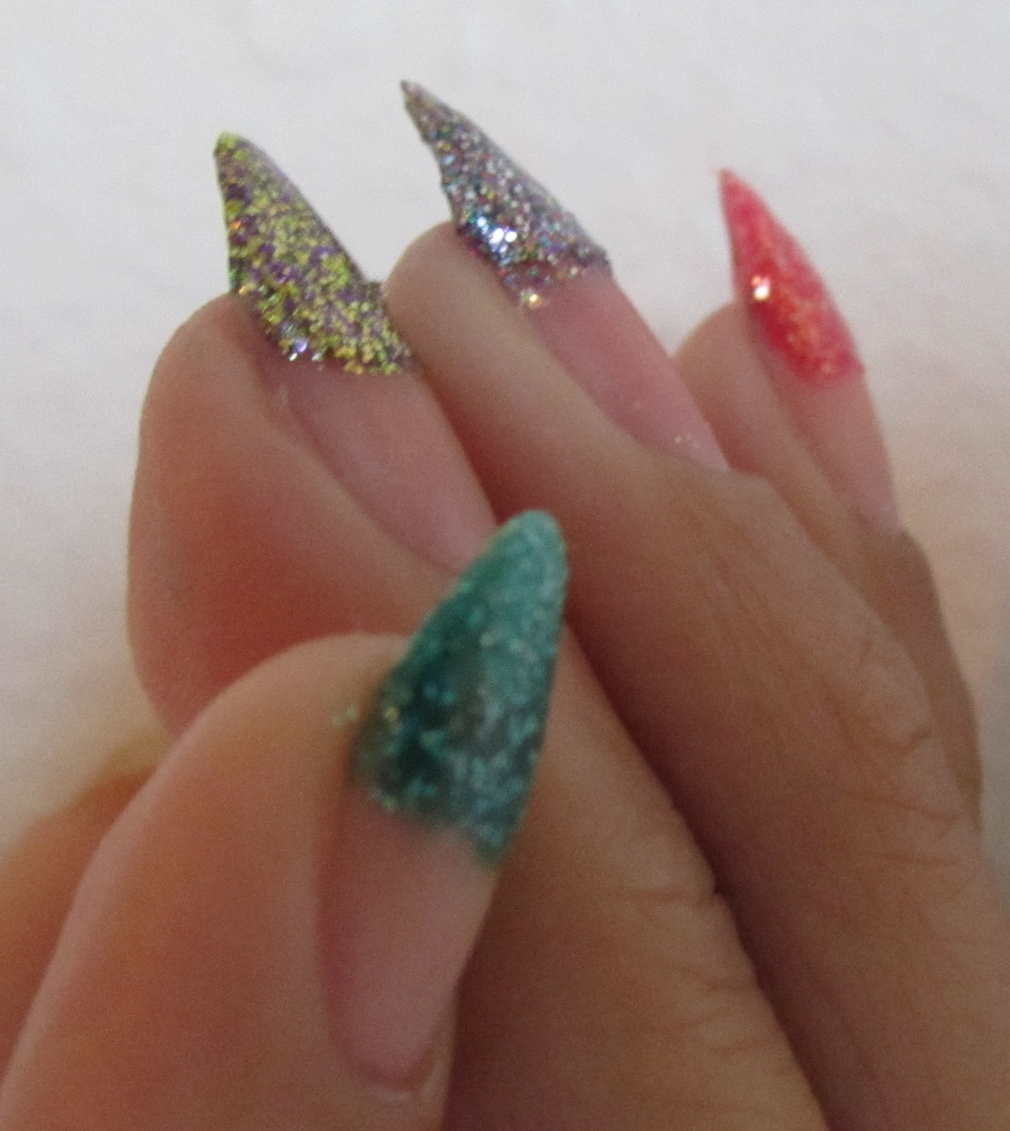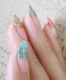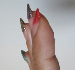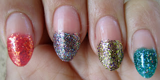I used two coats of each in the above photo. It's so amazing how similar the glitter and finish is. I am definitely impressed with myself here. HA! I want to try Captivated under the Shatter polish now!