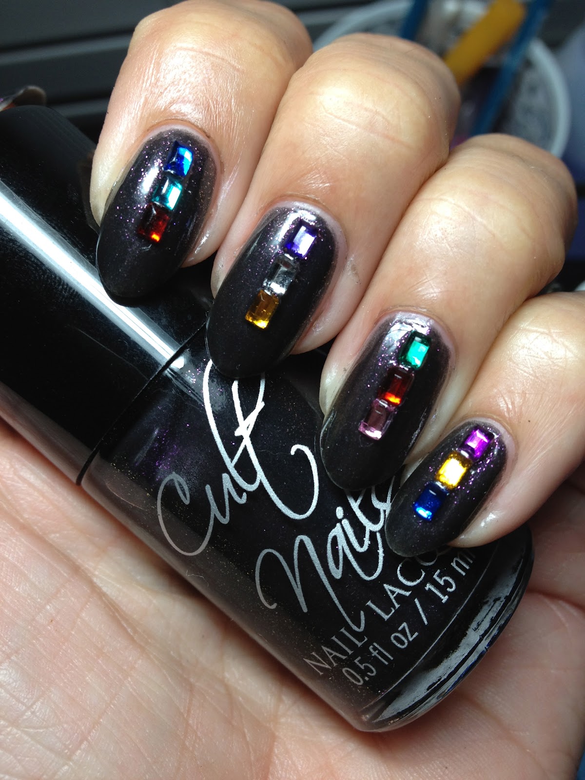 I used to be into nail art big time, and then my life got so busy, I just didn't have time for it, then it went out of style for a while there and I forgot all about it. Now it's back, and my skills are weak. I'm trying to work my way back up there. These are rectangle rhinestones that I was trying out. I think we are going to start selling some nail art supplies on our site. Let's see.