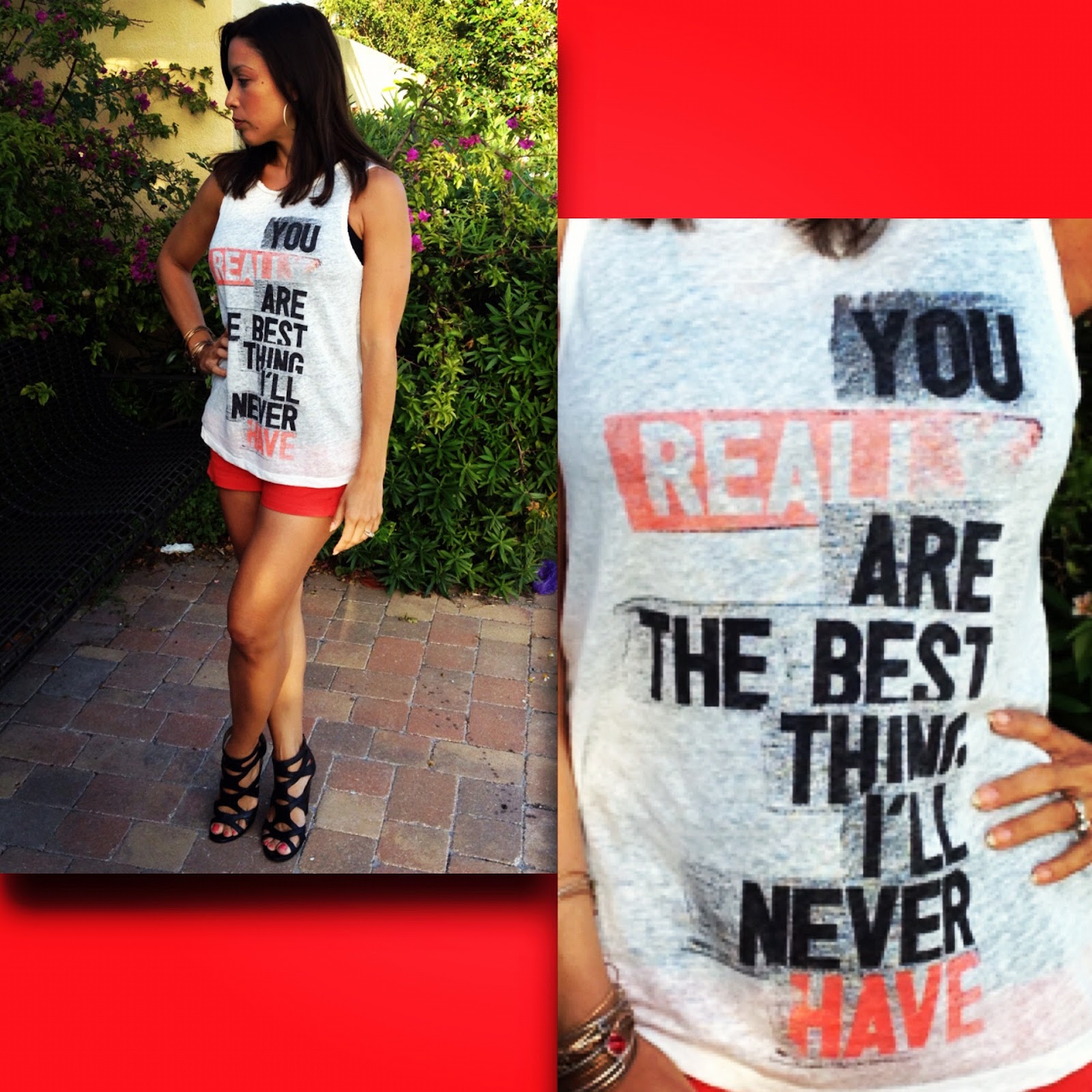 Wednesday I wore the shirt I bought from Zara. It says You Really Are The Best Thing I'll Never Have. I thought it said EVER have, not NEVER have. This makes it kind of sad. But for whatever reason I really like this shirt and I'm not one to wear shirts with stuff on the front like this. I threw on my coral orange shorts again with this one. See I do wear things more than once!