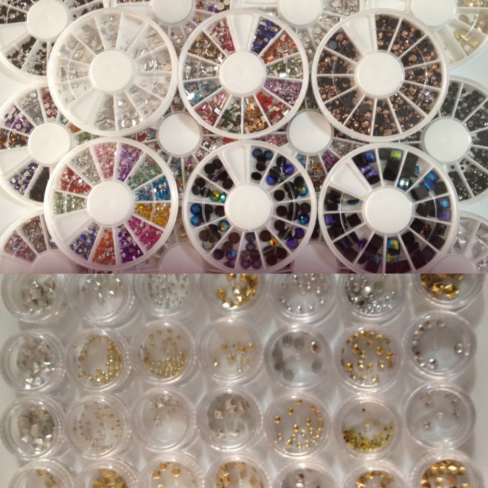 I also received boxes full of rhinestones and studs for nail art. We also received the gold flakes a few weeks ago. This will be the start of some nail art supplies on our website. We will add more depending on how this goes. I tried to get different things than what you normally see. I got some square and rectangular rhinestones, some pretty multi color gemlike "stones", square, octagonal, circle and other various shape studs. Just some cool looking stuff. They won't be available for sale for a few weeks though. First they all need to be photographed and named and then the site needs to be updated. It'll be crazy. Juan wants to introduce a handful at a time because otherwise it will take him forever to update the site. So while we work on this, we have a job for some of you!