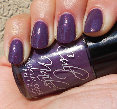 Spontaneous - This is one of my favorite polishes. Not of this collection, of all my polishes Cult Nails or otherwise. I absolutely love this deep purple with purple/pink glitter. This is two coats.