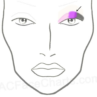 I preface this by saying, I am not a makeup guru, maven, or artist. The steps on the face chart below are not even close to professional! I just highlighted the areas so you could see where I applied what.  With that being said, here we go...