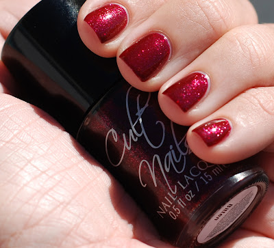 Bitten - Ah Bitten! I made this polish for release last December. But then I thought it was just way to simple. I didn't think anyone would want this one. But it was one of those haunting colors, I always wanted to wear it. So I decided I would release it and had the lab work on an updated sample for me. Then it arrived and I thought this is just not what people want. So I planned on putting it aside again, then Kari from Once Bitten Blog walked into the office, spotted it and exclaimed That's Bitten, my namesake polish! Instantly it became hers and how could I not release it! (Little fact - Kari actually helped name this entire collection that day!)