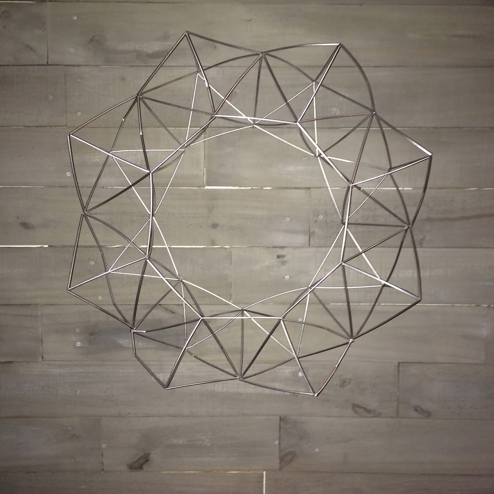 It actually perfected the piece! I love that you can see varying shades and some of the wood grain beneath coming through. I couldn't wait to hang it on the wall! So while the wax was curing, and since it was early on a weekend morning and the entire house was asleep, I decided to do some guilty Facebooking. A blog I follow did an update on their blog, and then I started going through projects on their blog for ideas for how to decorate my new wall piece, and that led me to Vintage Revivals blog. I was immediately entranced by her style and decided to look up past DIY's on her page. I came across a Himmeli wreath, which after looking up what the heck Himmeli meant, I watched her tutorial. You can see it here. I watched it one more time and then the other version here. THIS is the piece my planked piece needed. I knew it instantly. I decided to go with the first option and I was off on another DIY for the weekend.