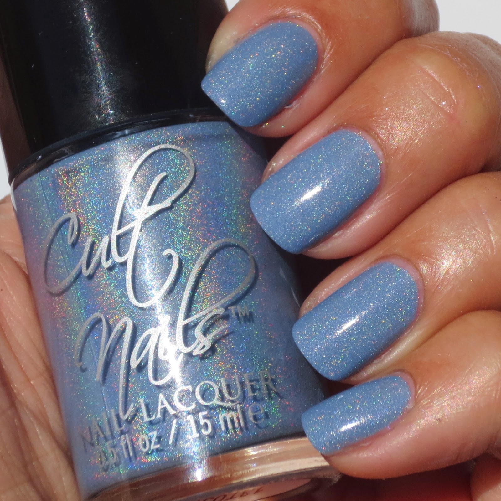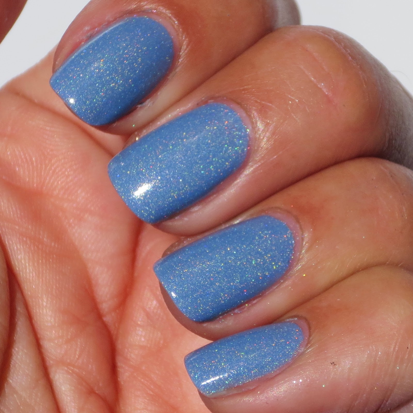 Intriguing - Intriguing is a periwinkle with lots of gray tones and some holographic shimmer thrown in for good measure. This one goes from leaning periwinkle to blue to gray depending on the light. The holographic shimmer is subtle and dances around in daylight but is more subdued indoors. You all know how much I love subtle shimmer, so this is taking that in a little different direction, while keeping the subtlety I love so much.