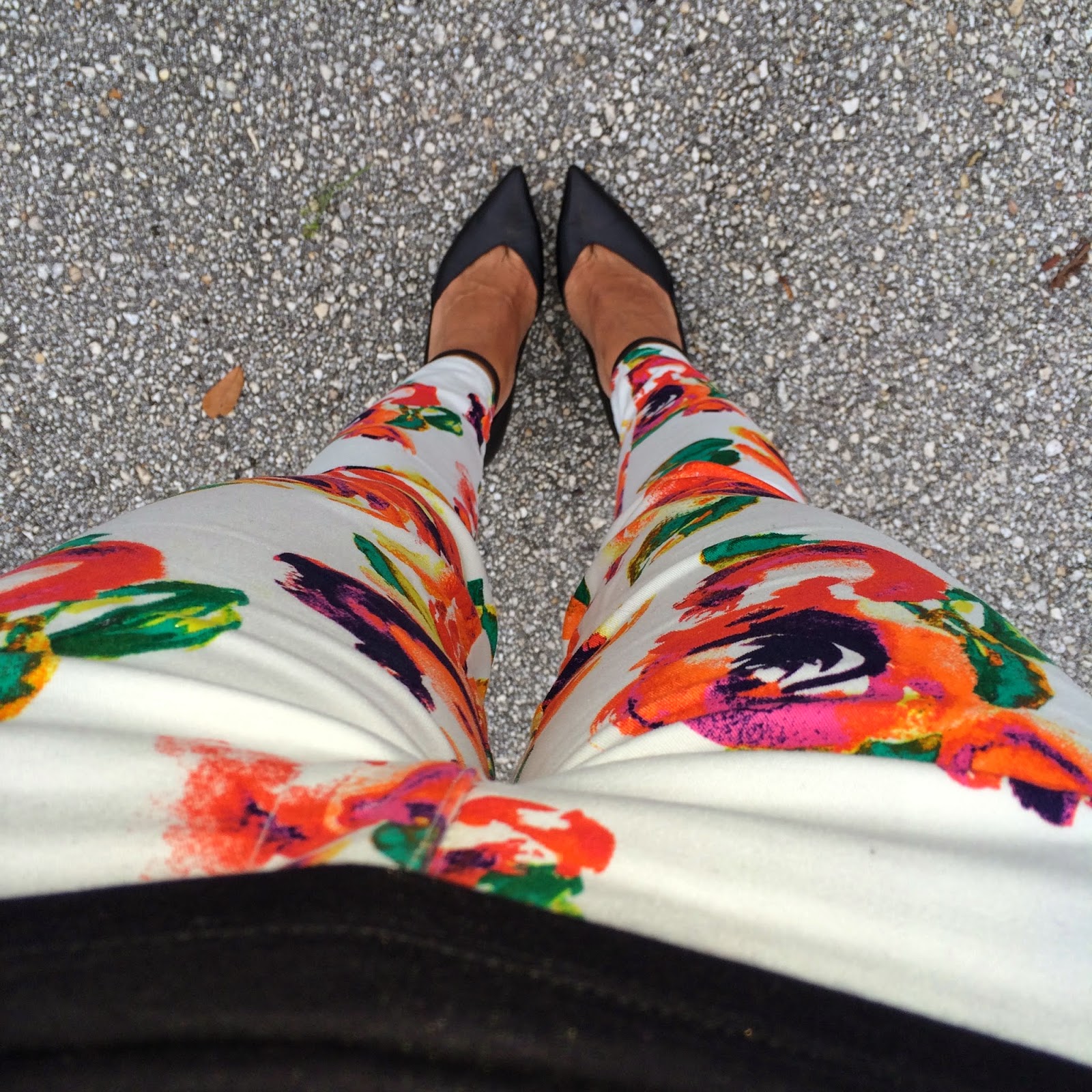 I had no makeup on when I wore them, so excuse the tired look on my face. I was just running to the office for the day and had a lot going on, so I basically threw on a tank and heels and called it good. Thanks to the pattern on the pants, it made me look a little more dressed up than I actually was. WAHOO!