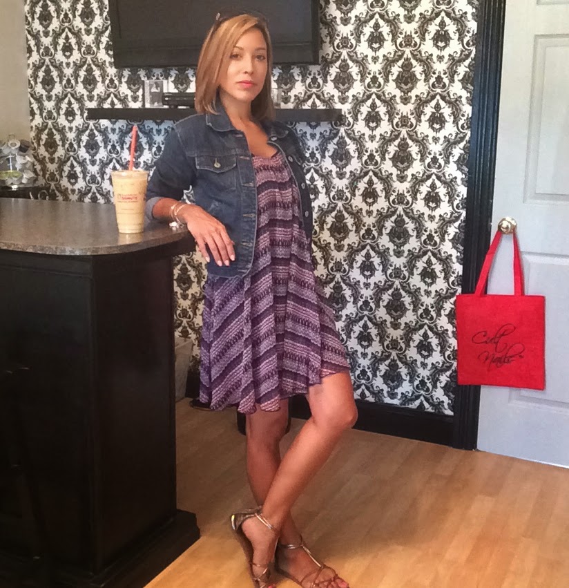 But come time to wake up for the day, the last thing I wanted to think about was getting dressed! Good thing I grabbed the short version of the maxi dress from Express. I threw that on with a jean jacket I got at Express when I was in my late 20's. (I'll be 40 in August!) The jacket still looks pretty new too! I grabbed a Dunkies iced coffee and went to work!