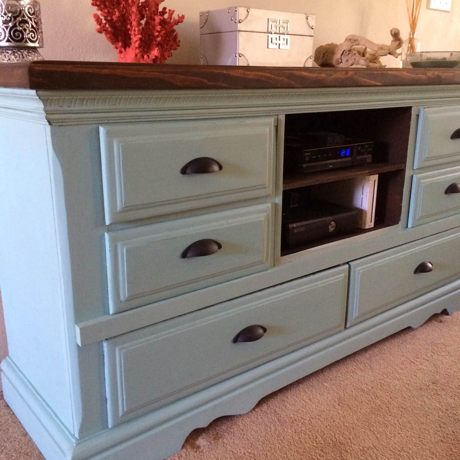 I am so in love with how this came out! It has just made my passion for refinishing furniture much stronger! I love having these unique pieces in my house. I can see how easily this can become an obsession. I dream of redoing old pieces and selling them on the side now. Everyone needs a custom entertainment center by Cult Nails, right? LOL
