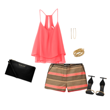 Maybe it's just me, but if I am spending the day out in the sun at an amusement park, I prefer thin straps or strapless. If you're like me, even with sunblock, you tend to get a bit of color on your shoulders if you're out in the sun. Not only that, you get so hot, you just want as little clothes on as possible, but you still want to look good. Jean shorts are a no go for amusement parks, wear something light, preferably cotton for maximum comfort. (skip the white shorts and make these tan if you plan on going on water rides.) You can throw the button down in your bag for the evening or in case it gets chilly.