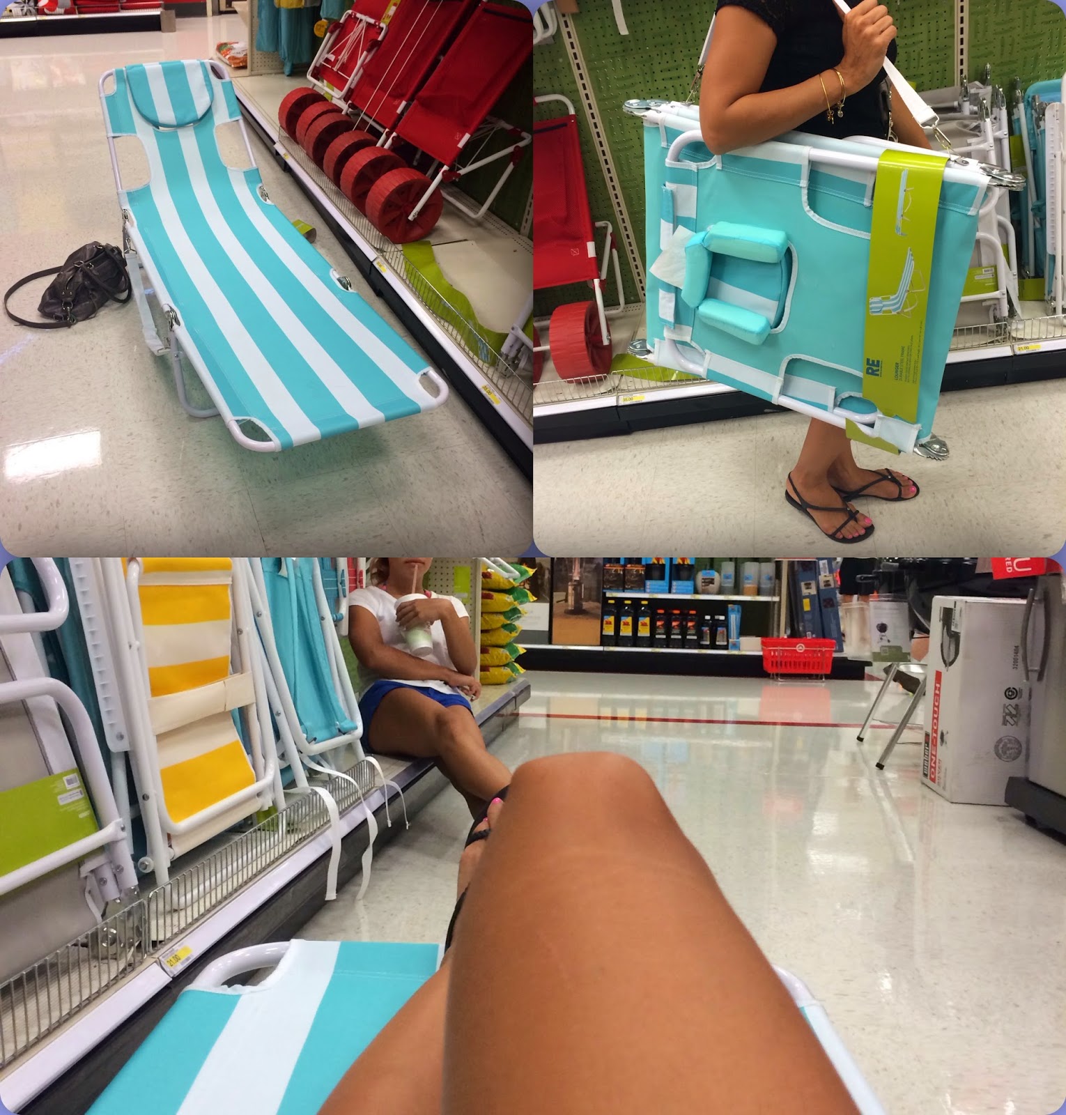 I had errands to do and while at Target, I came across this RE beach chair. OMG! A beach chair you could lay down in? YES! I needed this! I had to test it out in store! LOL!