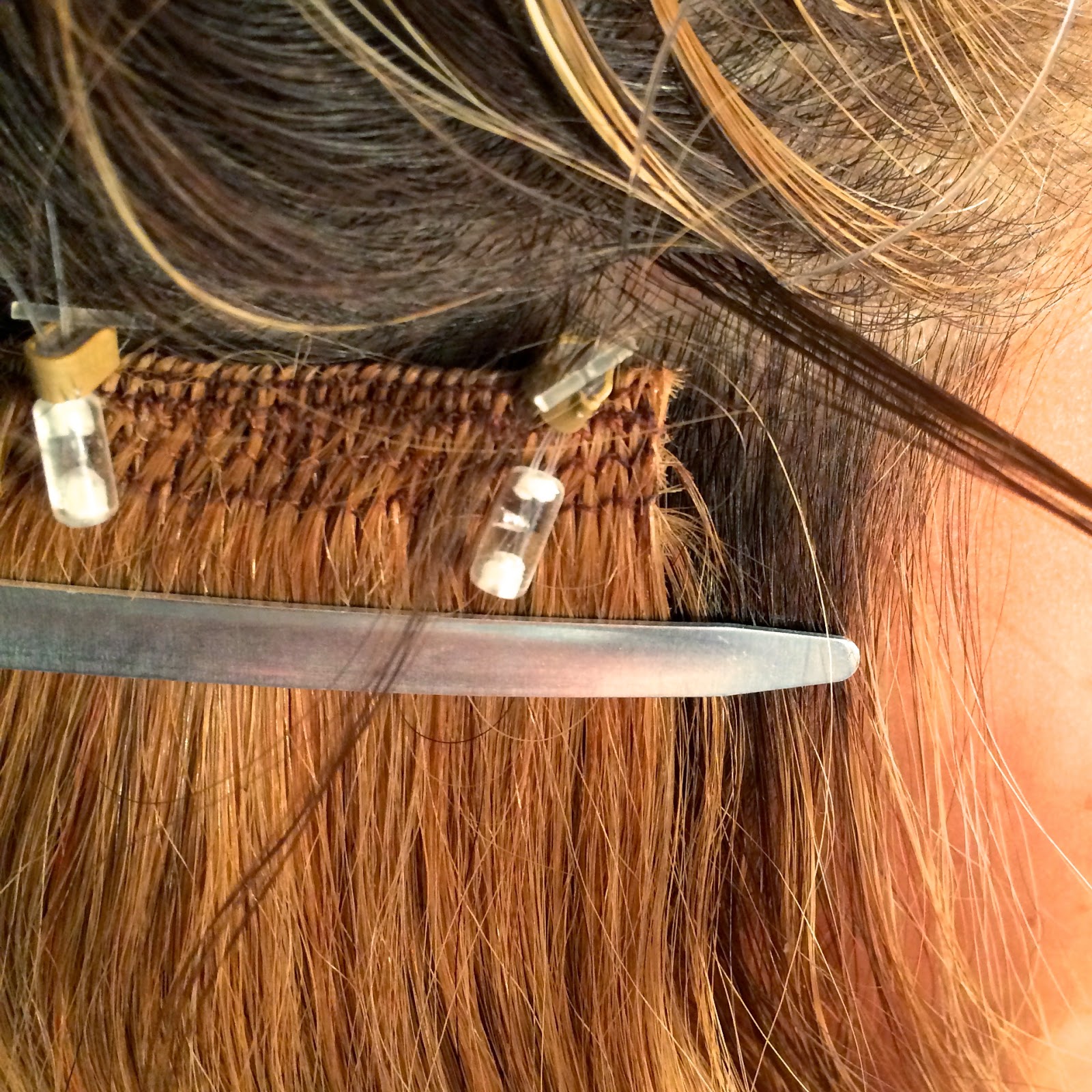 Oddly enough, I found Danielle because I didn't want to pay $900 for extensions! As many of you know, I cut my long hair about 2 years ago. By now my hair should be past my shoulders, but I have been having a blast with my short hair and now, the stage I hate has arrived. It is at this stage, every time I cut my hair where extensions enter my life. I just can't stand how it feels having my hair graze my shoulders. I can't explain it, but the feeling is just so uncomfortable to me. I have done clip ins, glue ins, and sew ins. I even had micro mini braids once. But it's been 9 years since my last trip with short hair, and extensions have come a long way since then! Thank goodness, because nothing was more uncomfortable than sew in and glue in extensions! Clip ins were great, except I had to re-apply them every morning. I am a DIYer by nature, but I was seriously considering having my stylist install a set of micro bead extensions.